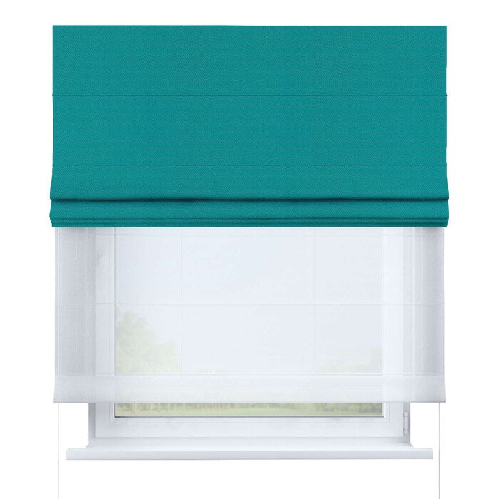 Римская штора день-ночь блэкаут однотонный бирюзовый, карниз верёвочный