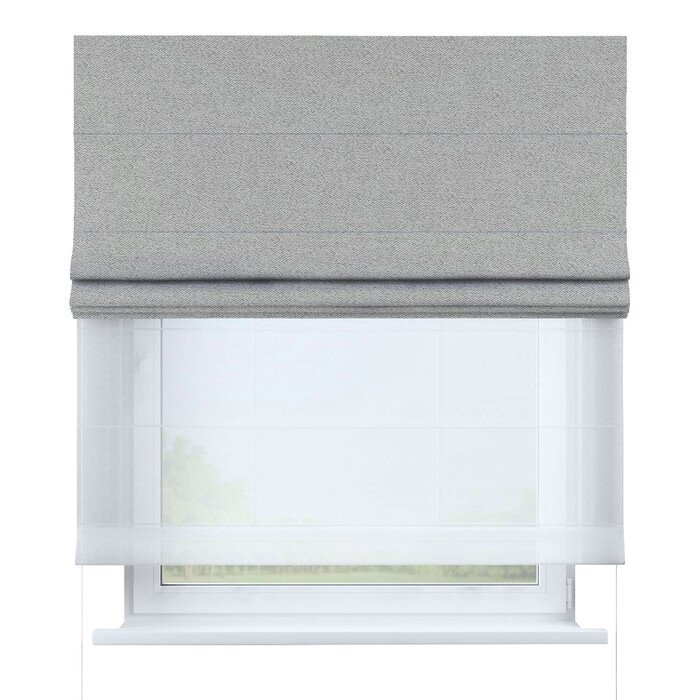 Римская штора день-ночь твид блэкаут светло-серый, карниз верёвочный